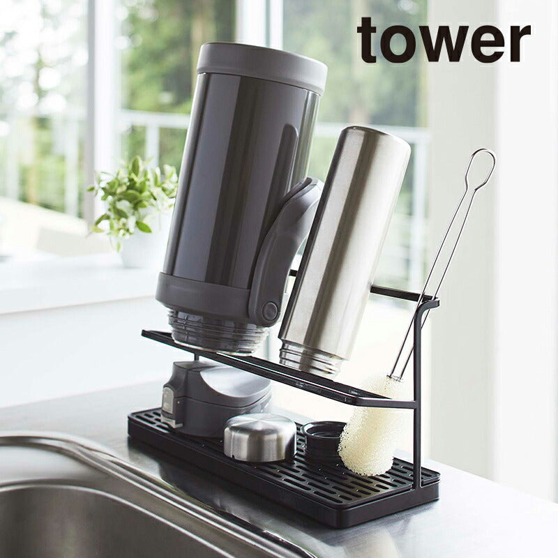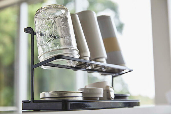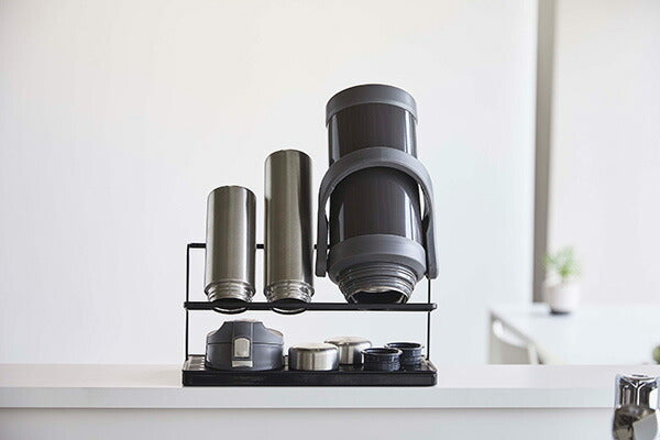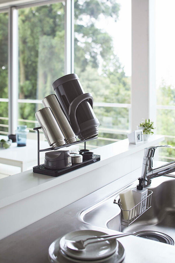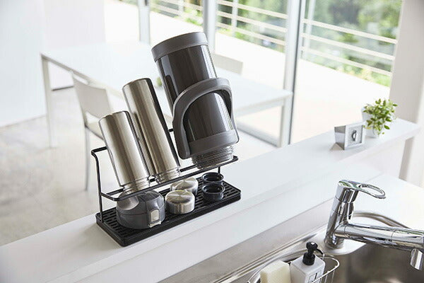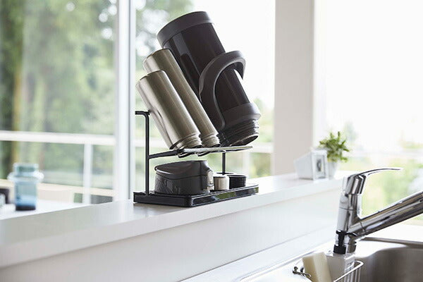 ●サッと立てかけるだけ!マグボトルからジャグボトルまで干せる大容量ボトルスタンド。