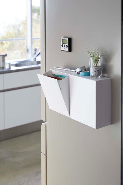 ●付属のマグネットで冷蔵庫やキッチンパネルに取り付けて、ゴミ箱や収納ケースとして使えます。
