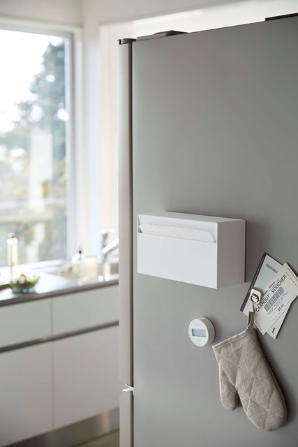 ●付属のマグネットで冷蔵庫やキッチンパネルに取り付けらます。