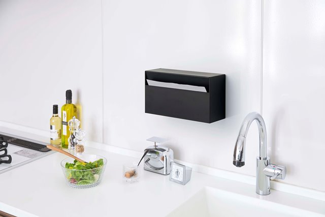 ●置いても、壁に付けても使える、前から簡単に交換ができるスマートなペーパーホルダー!