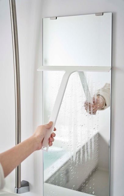 ●ワイパー部分がワイドだから30cmまでの鏡の水切りも1度でスッキリ!