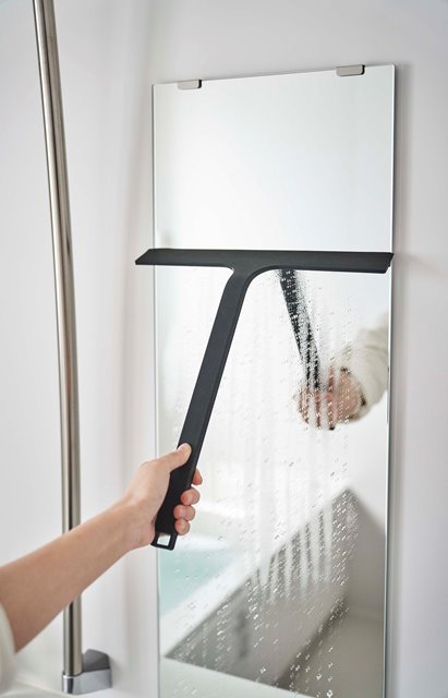 ●ワイパー部分がワイドだから30cmまでの鏡の水切りも1度でスッキリ!