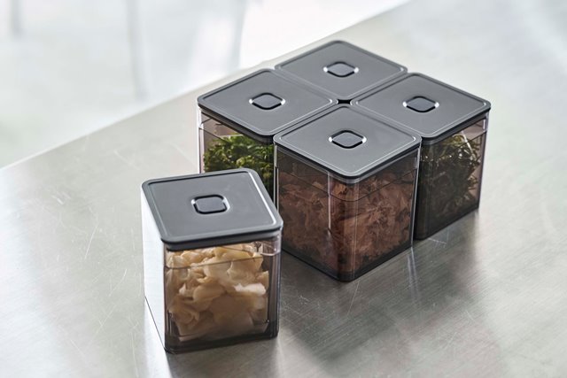 山崎実業 トング付き バルブ付き密閉保存容器 タワー ブラック 【品番:05468】