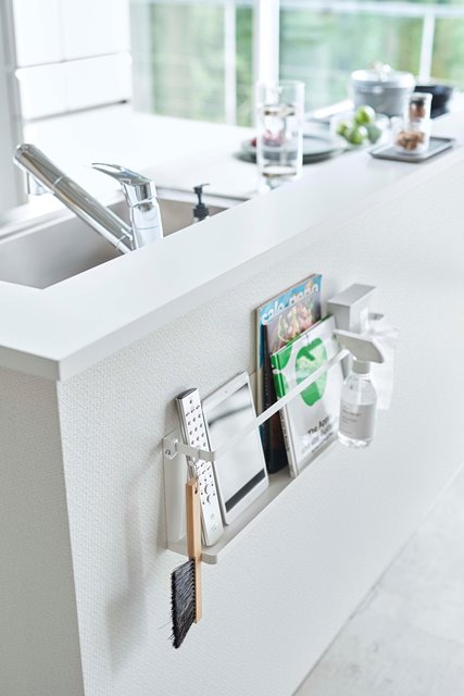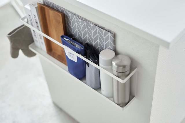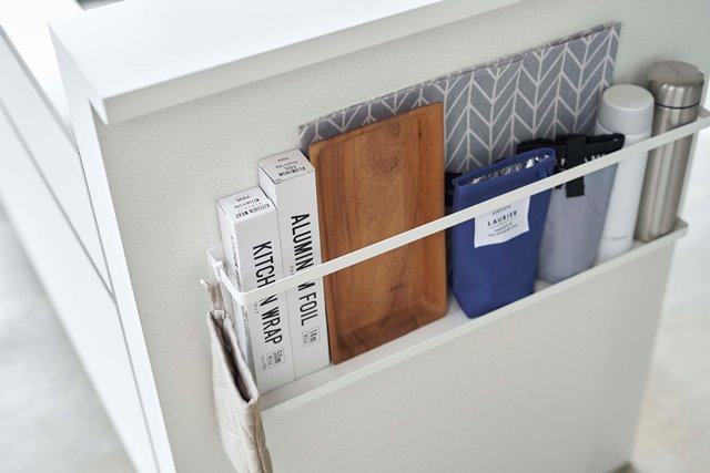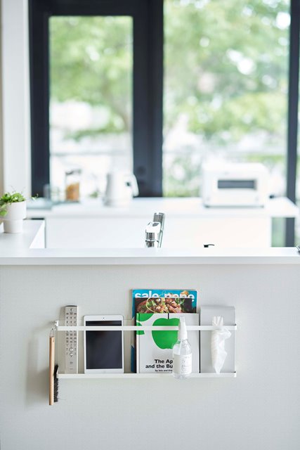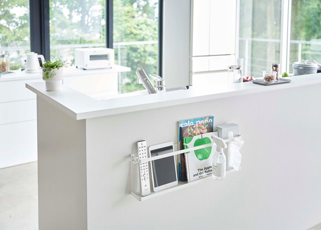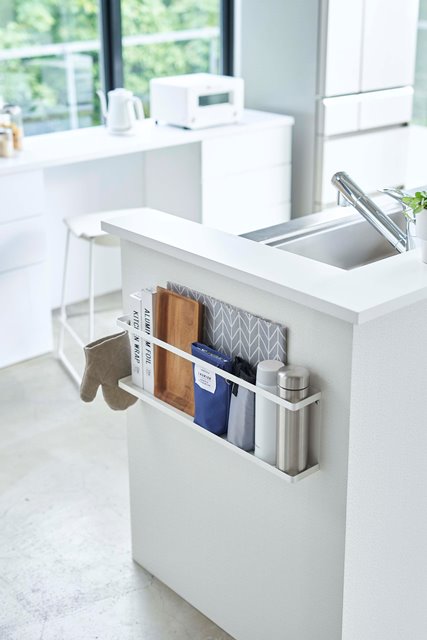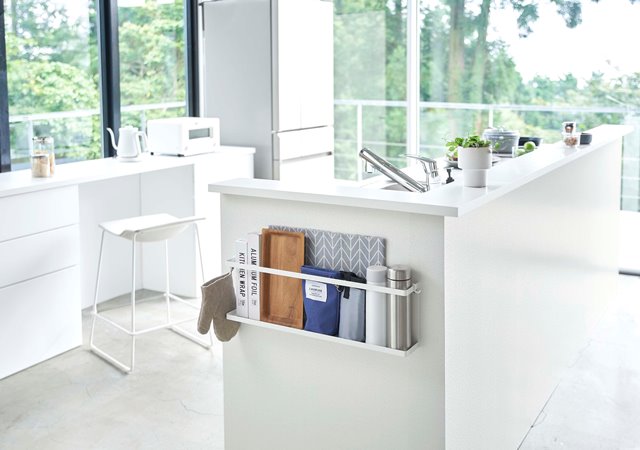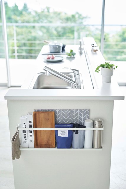 ●キッチンカウンターの側面やダイニング側に付けられる便利な収納ラック!