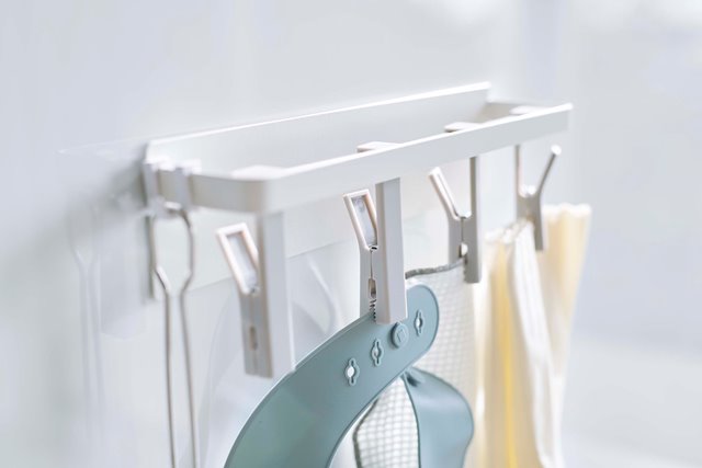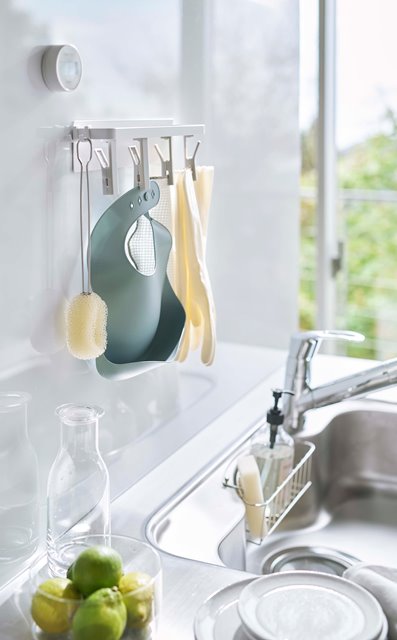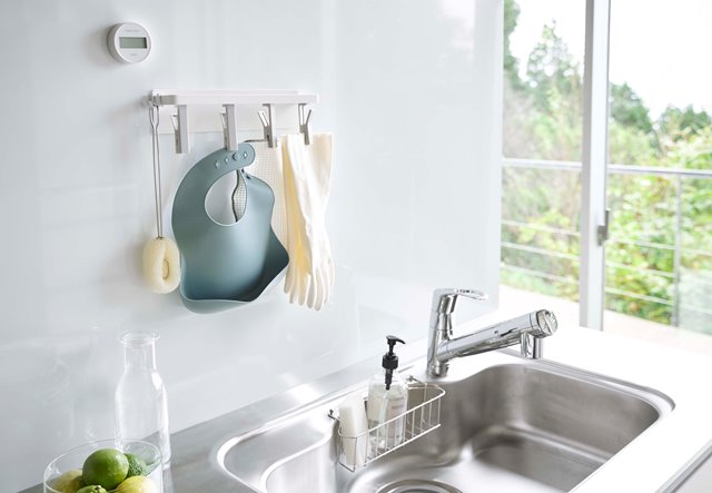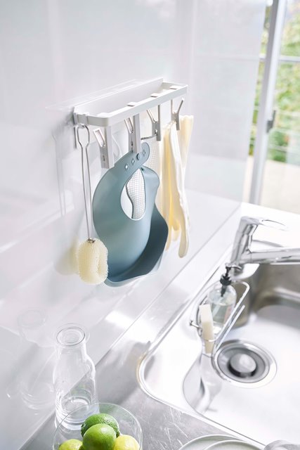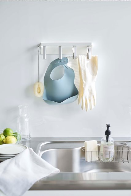 ●キッチンパネルに取りつけて、ゴム手袋やべビー用品なども吊り下げ可能!