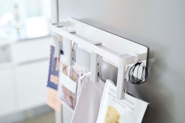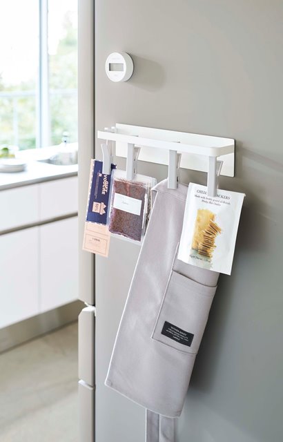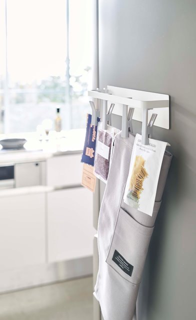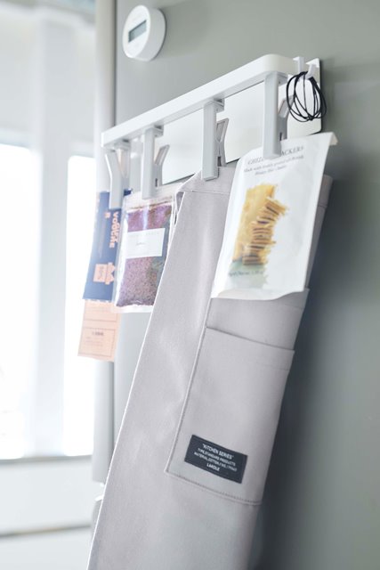 ●スパイスの詰め替え袋やお菓子の食べかけ、エプロンなどを留めておくのにも便利。