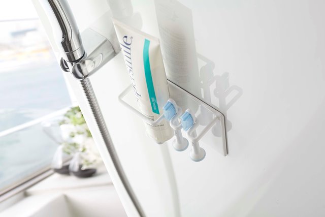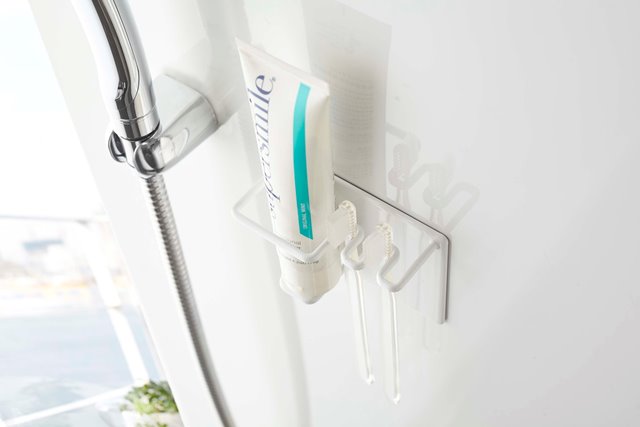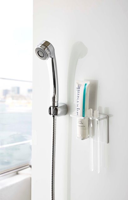 山崎実業 マグネットバスルームチューブ&トゥースブラシホルダー タワー ホワイト 【品番:05510】