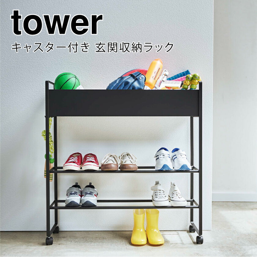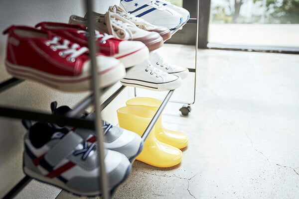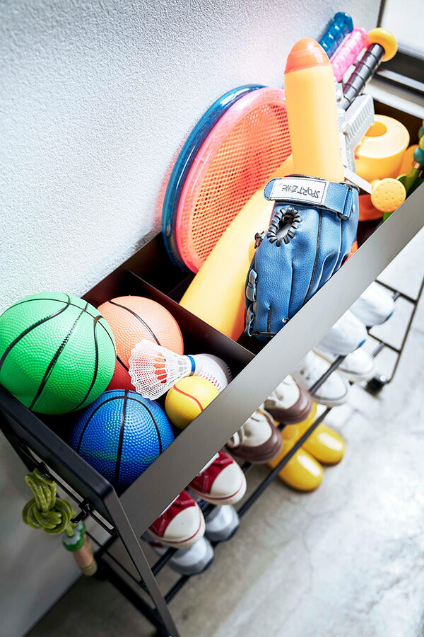 ●子供の遊具や靴、ボールなどを玄関にスッキリ収納できるキャスター付き収納ラックです。