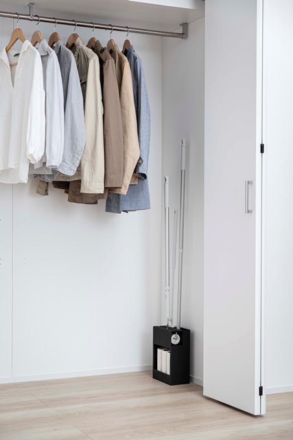 ●フローリング・ハンディーワイパーをスリムに立てて収納。