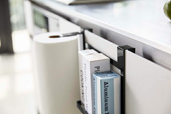●よく使うキッチンペーパーやラップなどをまとめて収納!