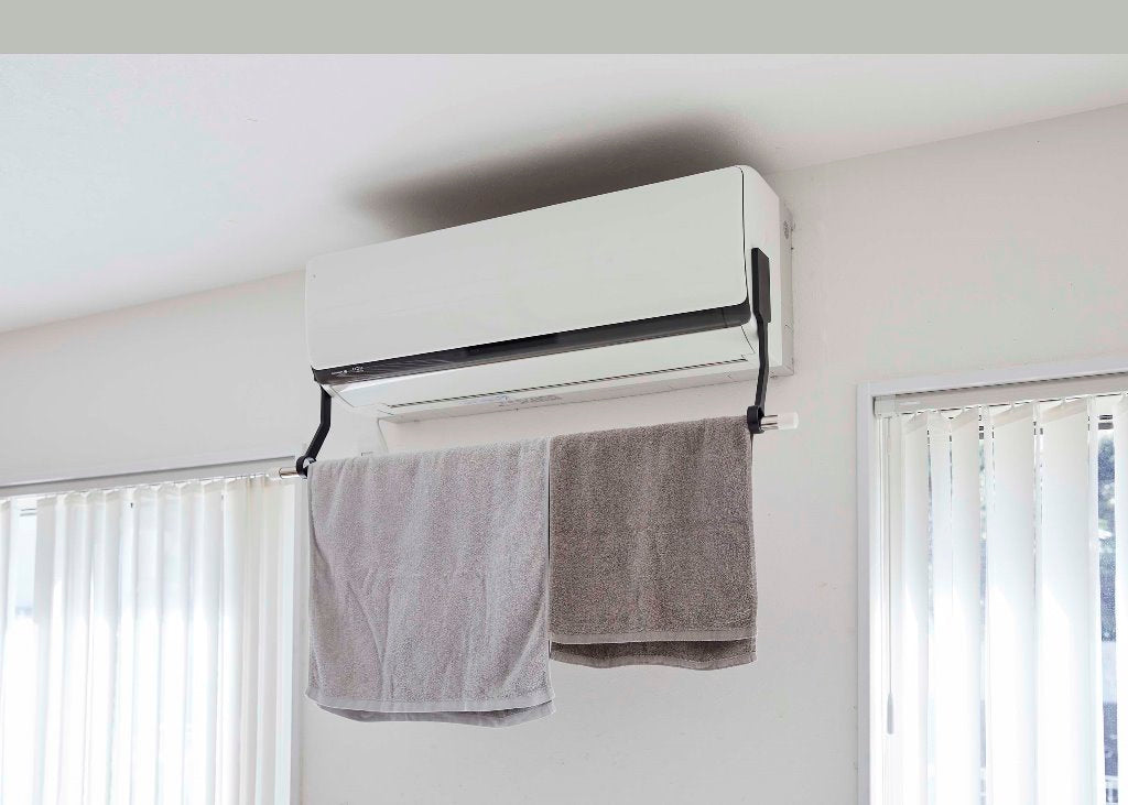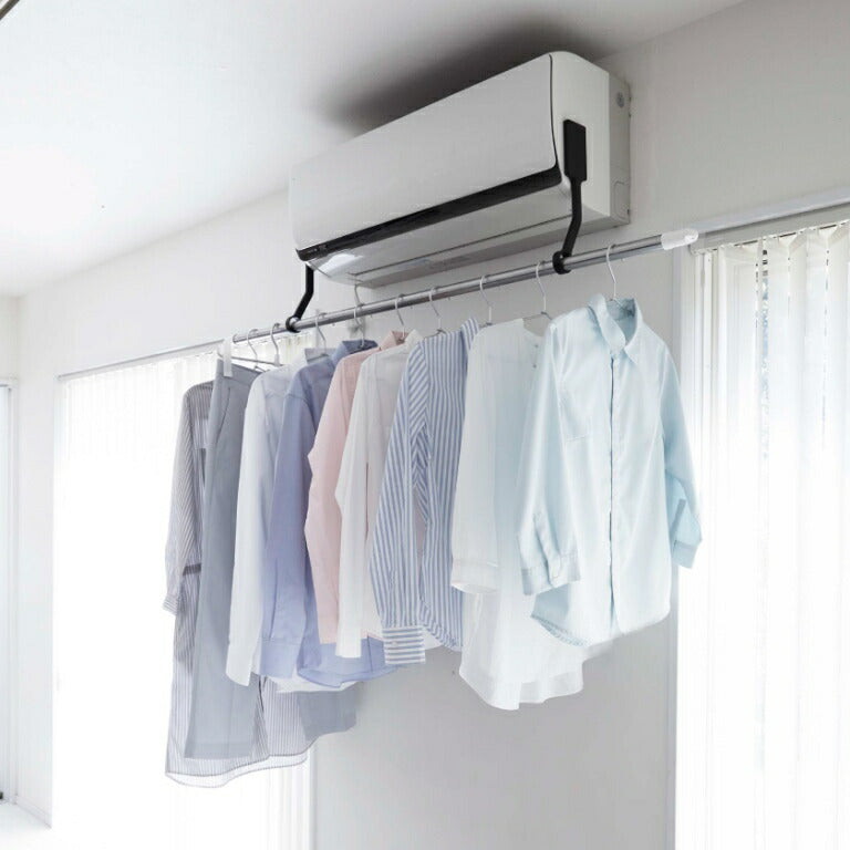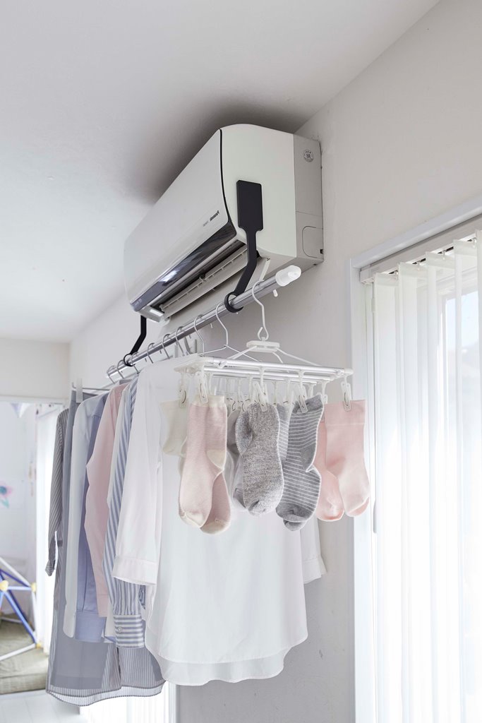 ●エアコンの風を直接当てて、洗濯物を効率よく乾かすことができる室内物干しポールホルダー。