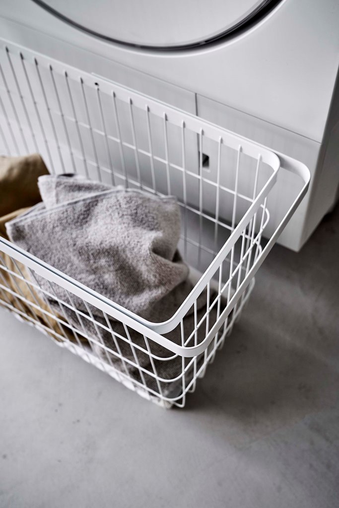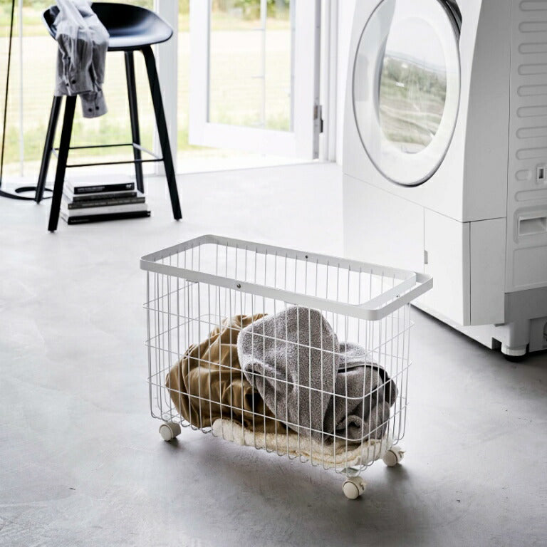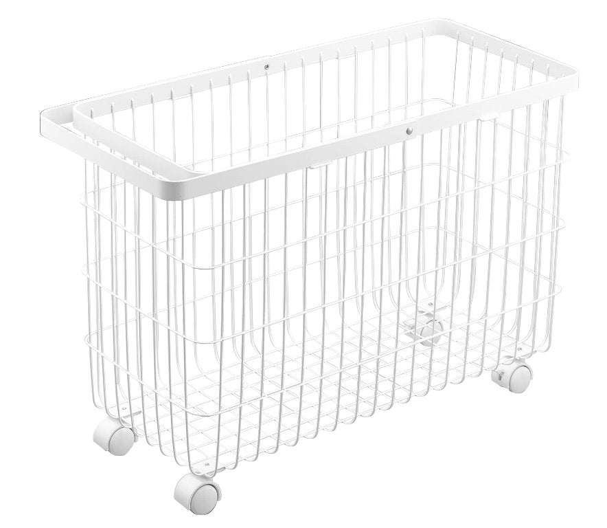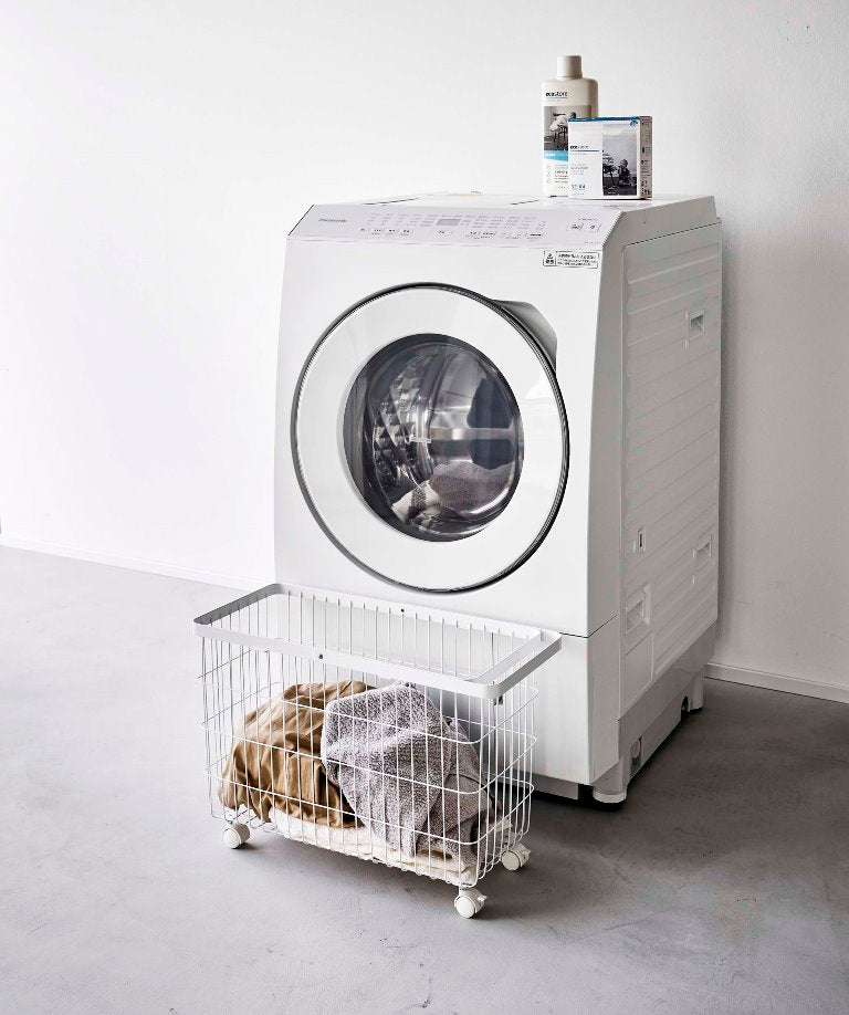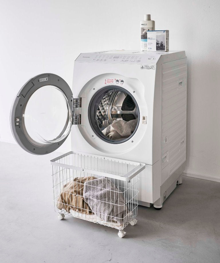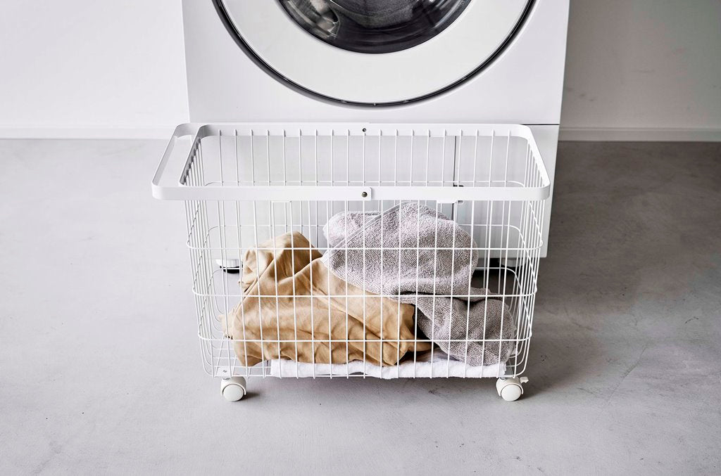 ●洗濯機の幅に合うワイドなキャスター付きランドリーバスケット。