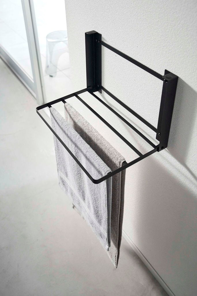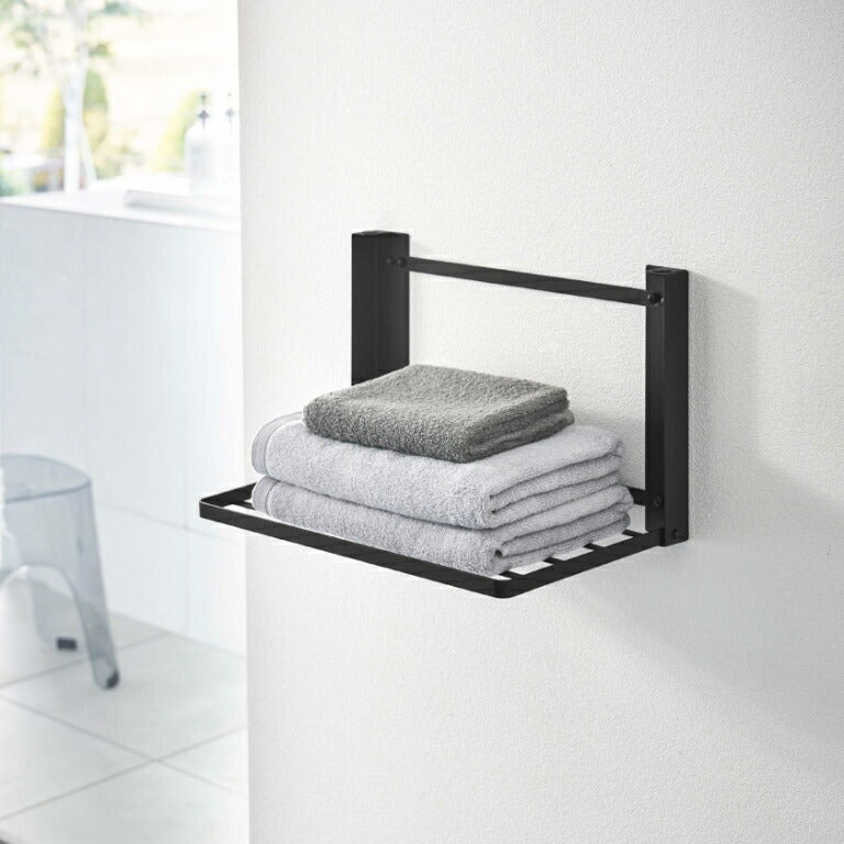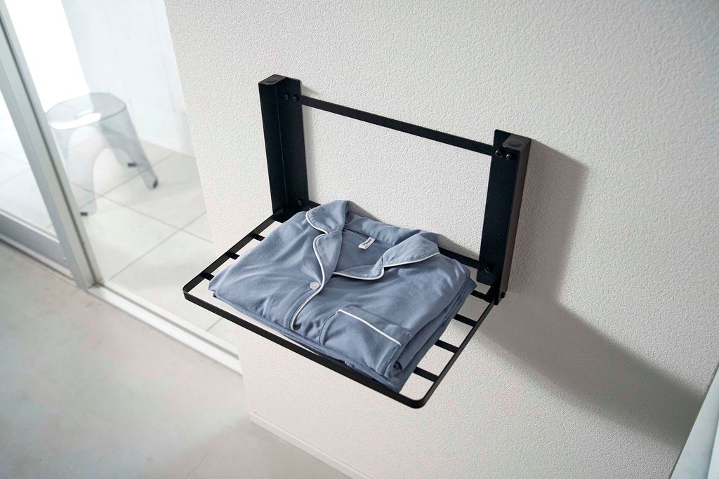 ●入浴後の着替えやバスタオルなどを一時置きできる便利な折り畳みラック!