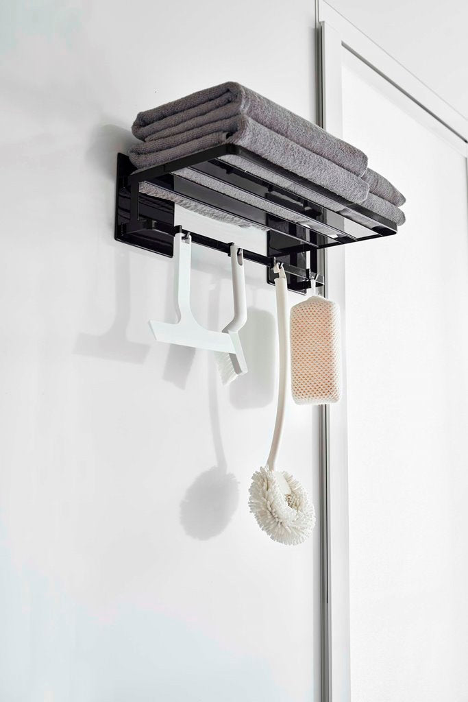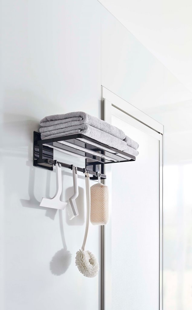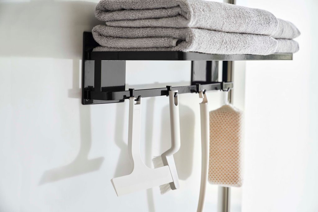 ●下のバーにバスマットをかけて干したり付属のフックでバス小物を吊り下げても便利です。