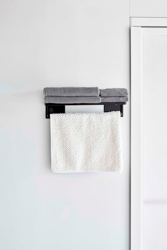 ●幅約45.5cmと幅広でバスタオルとフェイスタオルをセットで置くことができます。